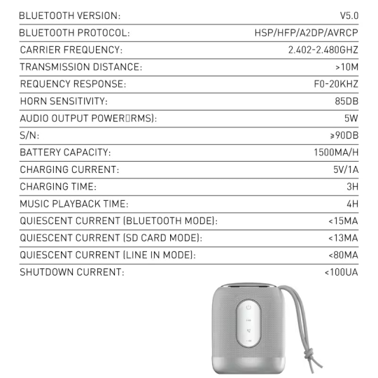 Bluetooth zvucnik LDNIO BTS 12, 5W, sivi