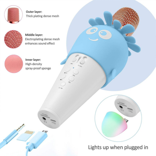 Opremljen LED svetlima u 7 boja, ovaj mikrofon sa zvučnikom pruža uravnotežen i živopisan svetlosni efekat.
